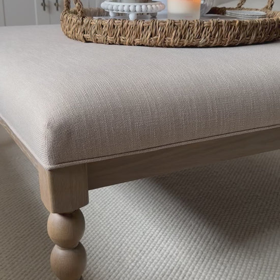 Elevate your living room with the timeless elegance of the Beaumont Coffee Table. Expertly crafted from solid oak, this piece showcases hand-turned bobbin legs, a traditional technique perfected by skilled artisans using a wood lathe. The subtle lime-wash finish enhances the natural oak grain, creating a soft, mellow tone that blends beautifully into both modern and classic interiors.