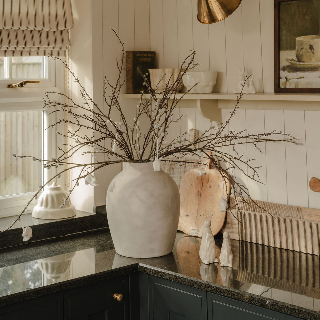 Bring soft elegance and natural charm into your home with the Grey Pussy Willow Spray — a beautifully lifelike artificial stem designed to capture the delicate beauty of real pussy willow branches. Featuring grey, velvety catkins and slender, natural-looking stems, this faux spray adds a refined touch of texture and calm to any space.